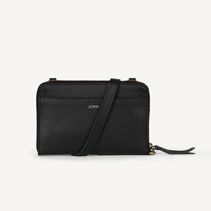 Pebbled Leather Crossbody Wallet- Black