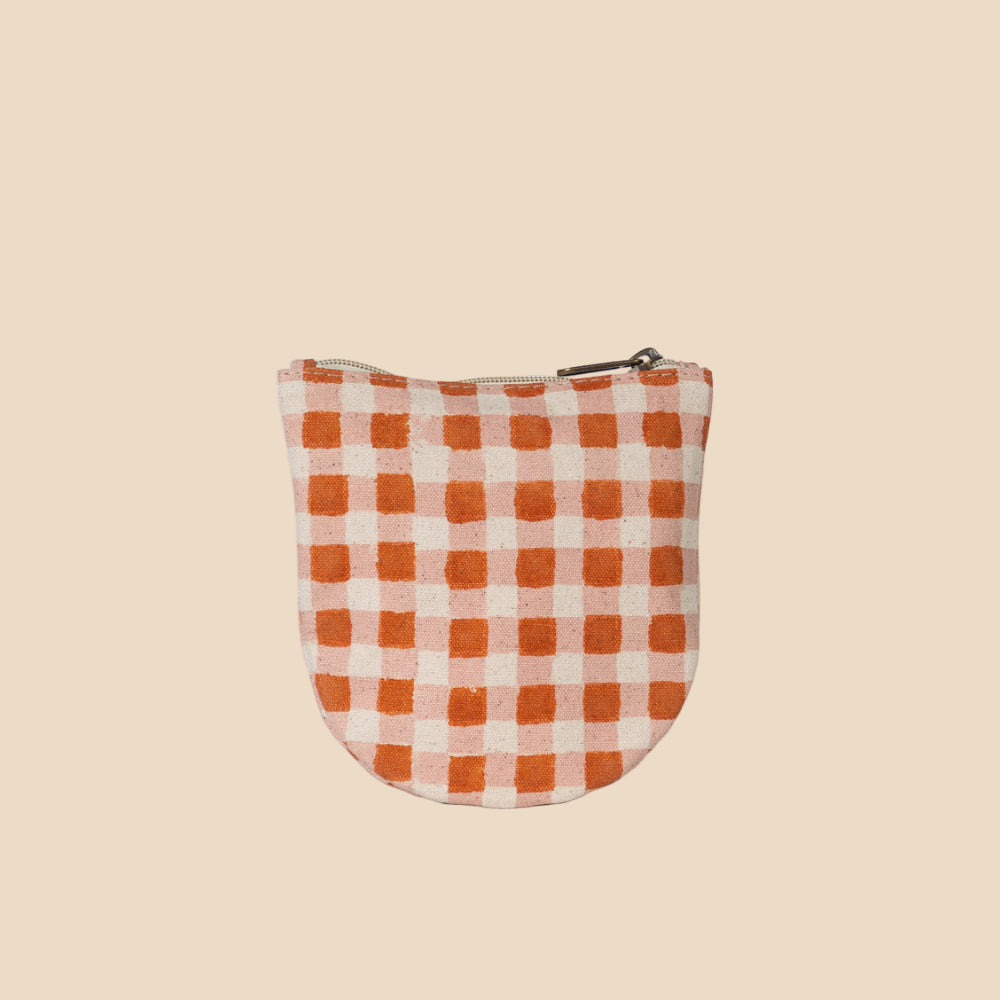 • Small pouch with orange and white checkered pattern made by JOYN India