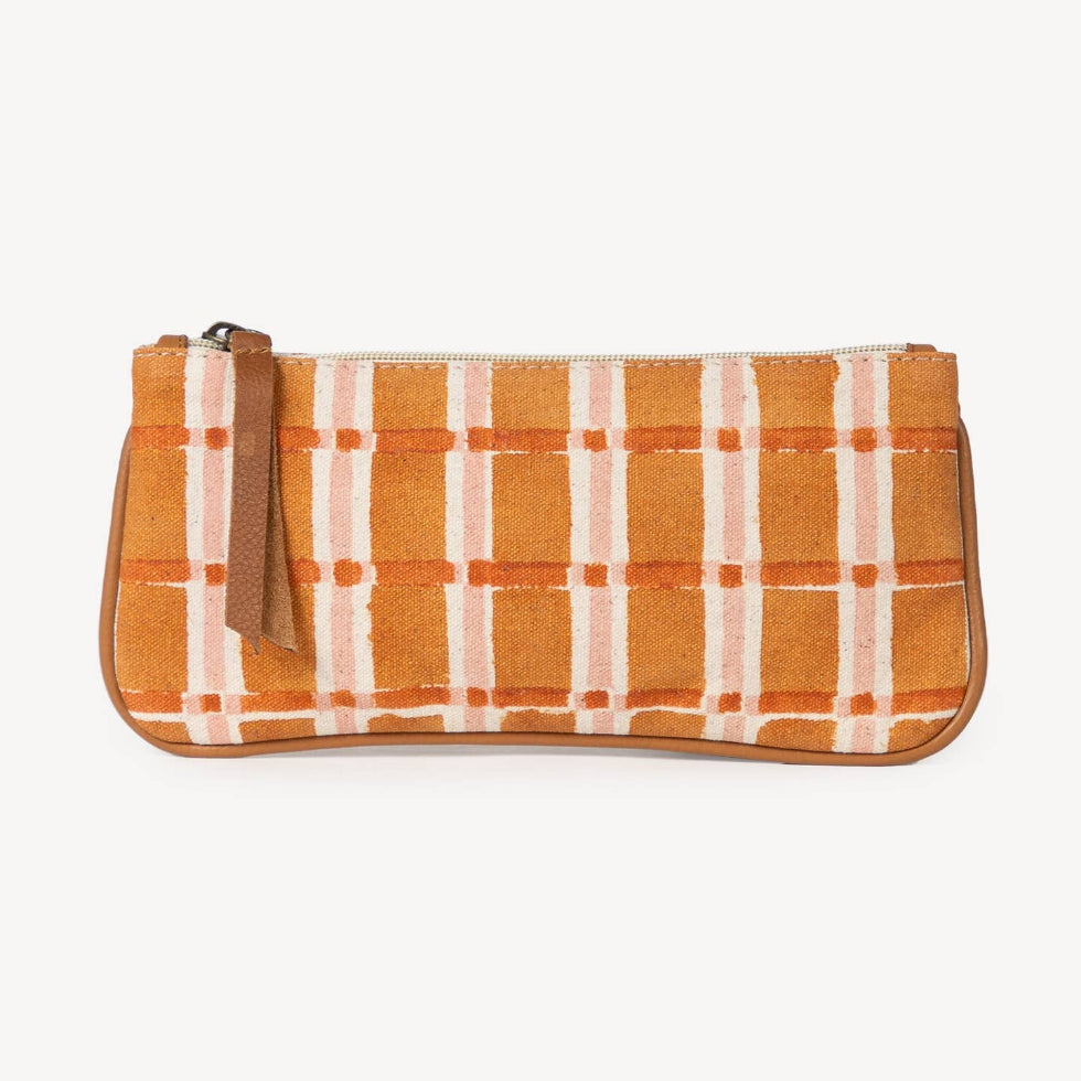 This fair trade Pencil Pouch is the perfect handmade home for life's little essentials. Thoughtfully crafted from hand block printed cotton canvas, elevated with leather trim.