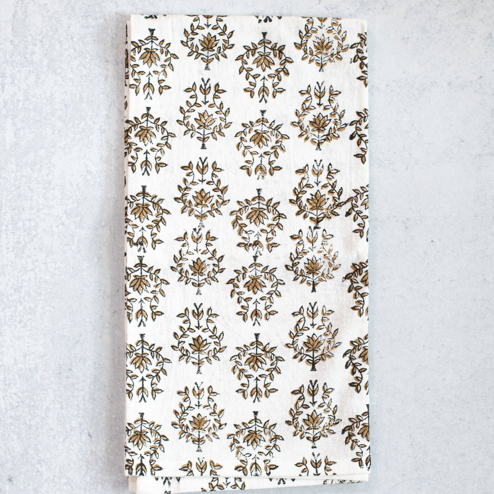 Each tea towel is 100% flour sack cotton and hand block printed to be a stunning decor item or a work horse to help you clean!