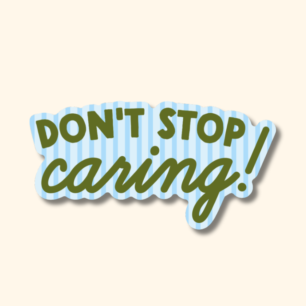 It’s easy to shut down when the world feels heavy, but caring is a form of resistance. This sticker is a reminder to keep going!
