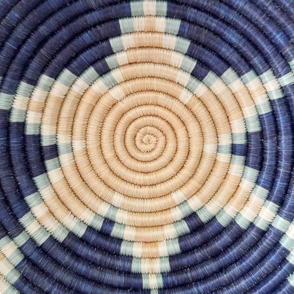 This sisal, woven basket is approximately 8" in diameter and woven by our artisans in Gitarama, Rwanda.