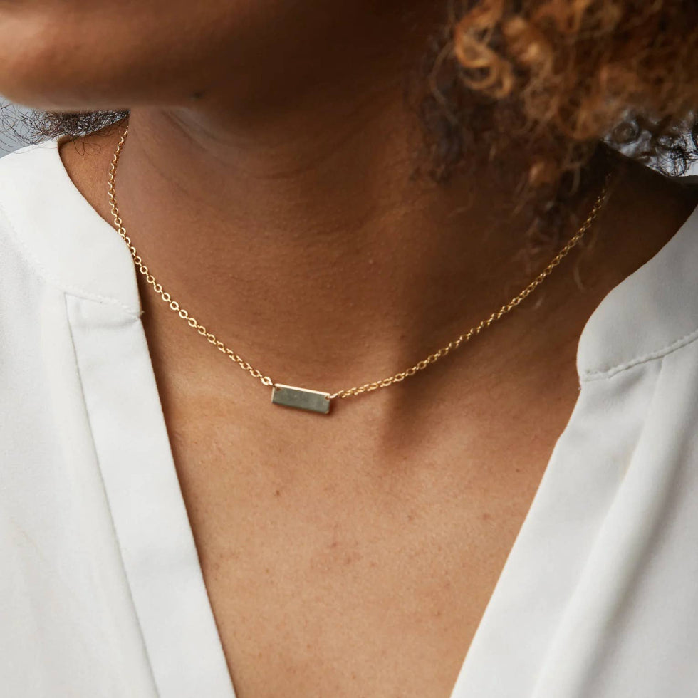 Available in 14k gold-fill 15mm bar on a 13-16" 1.4mm 14k gold-fill adjustable chain