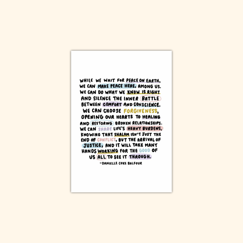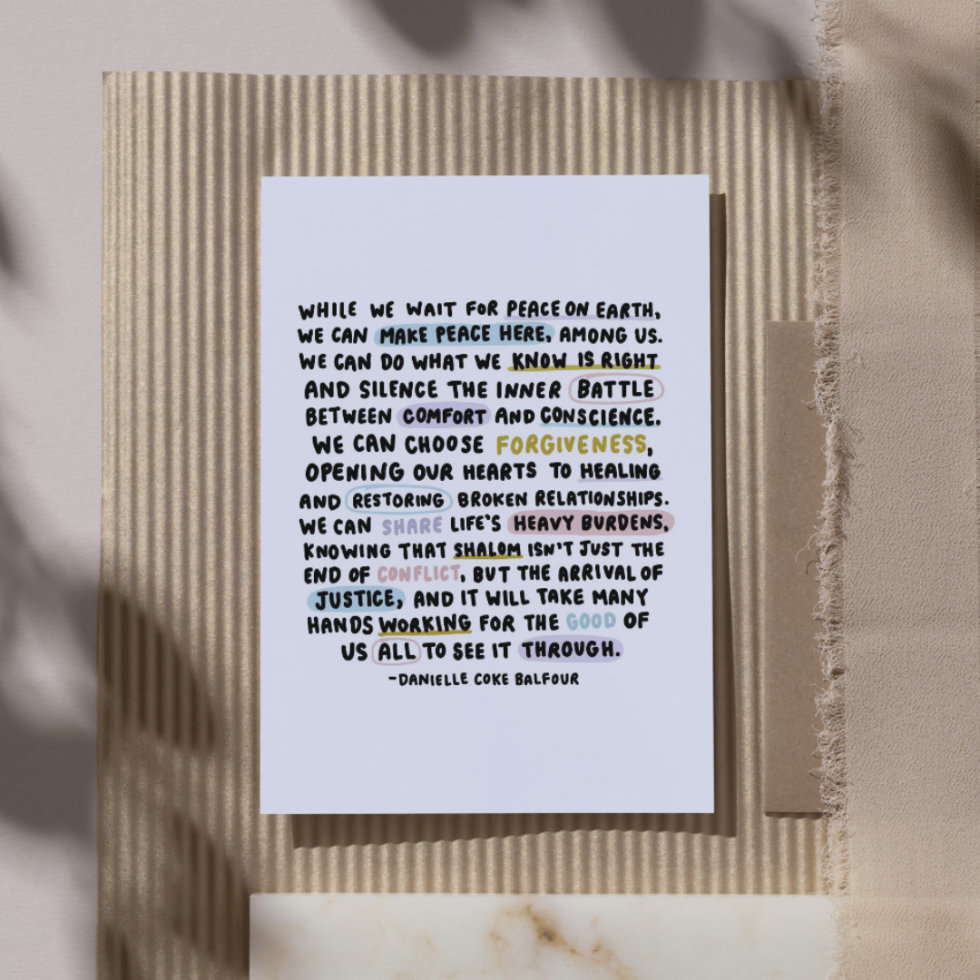 Perfect as inspirational wall decor, this justice artwork is an invitation to cultivate peace in our lives and communities.