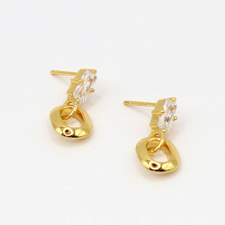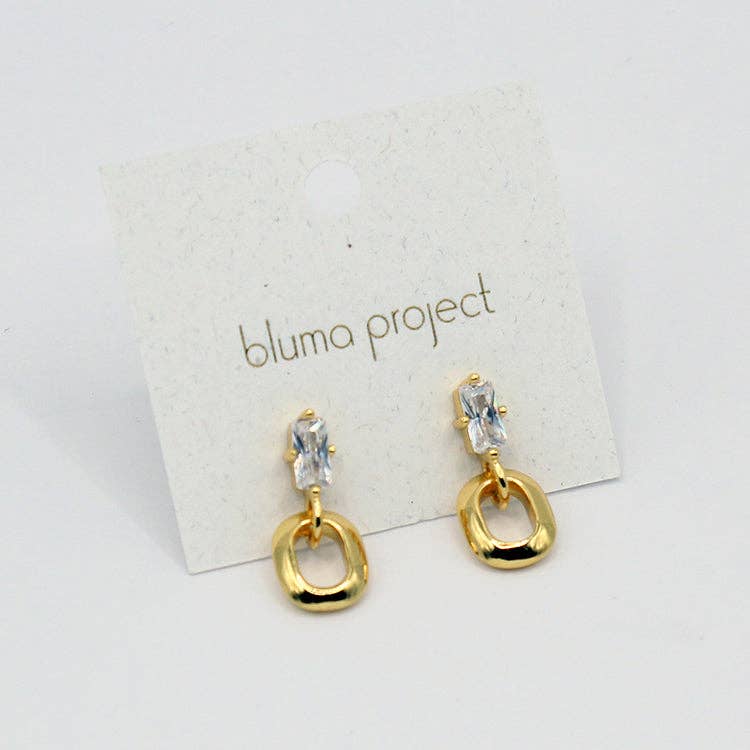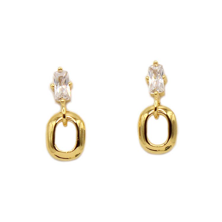 CZ baguette stud with a tiny oval link.