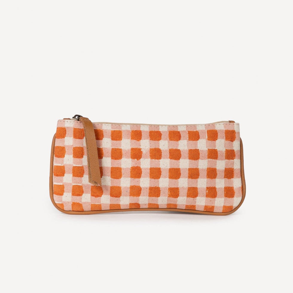 This fair trade Pencil Pouch is the perfect handmade home for life's little essentials. Thoughtfully crafted from hand block printed cotton canvas, elevated with leather trim.