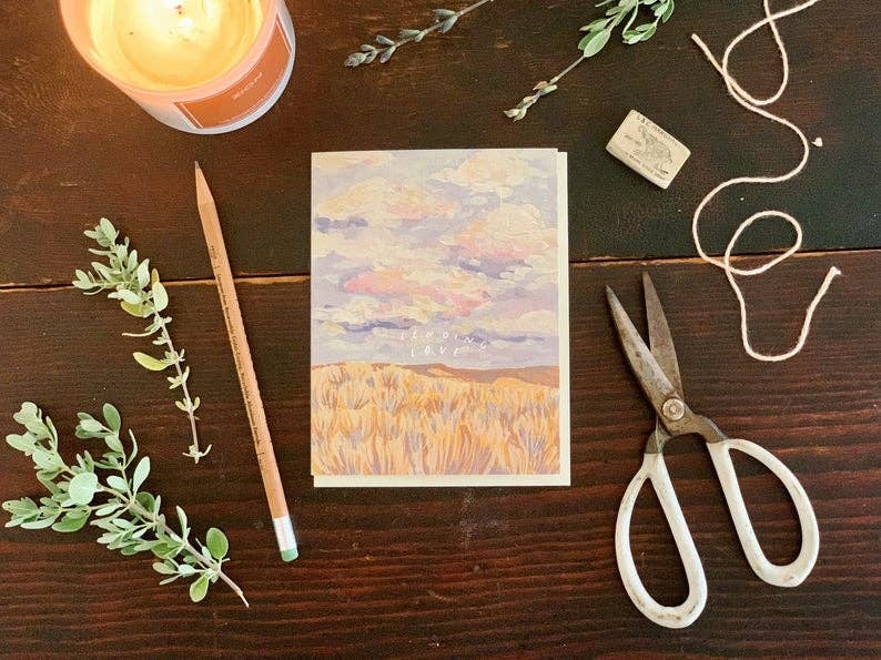 Its calm horizons and muted color palette offer a little peaceful escape that is just right for an encouragement or sympathy card.