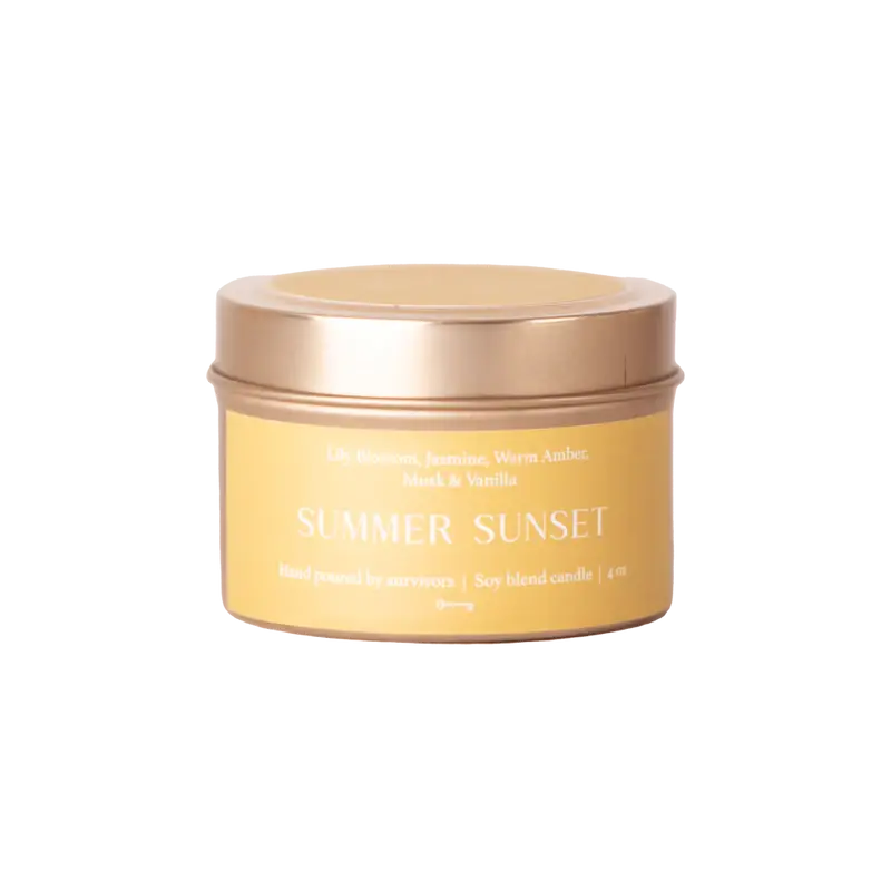 This 4 oz travel tin candle is made with soy blend wax, phthalate-free fragrance oils, clean-burning cotton wicks and is hand-poured by women survivors.