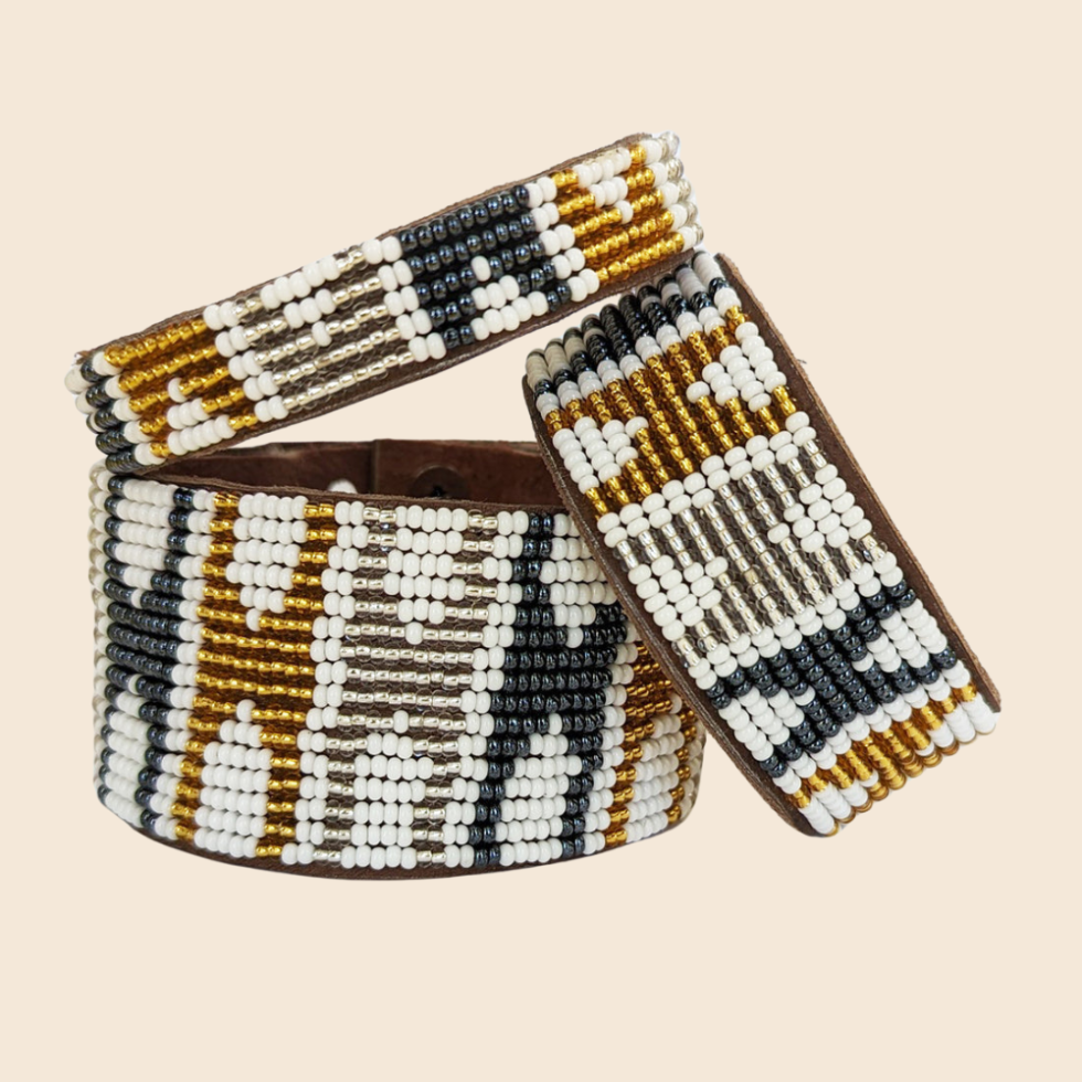 Swahili Coast Beaded Leather Cuffs are the perfect fair trade accessory.