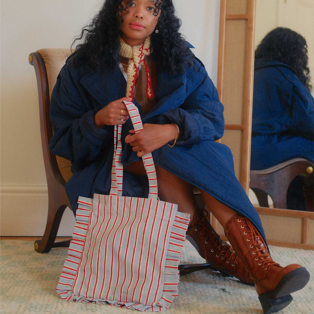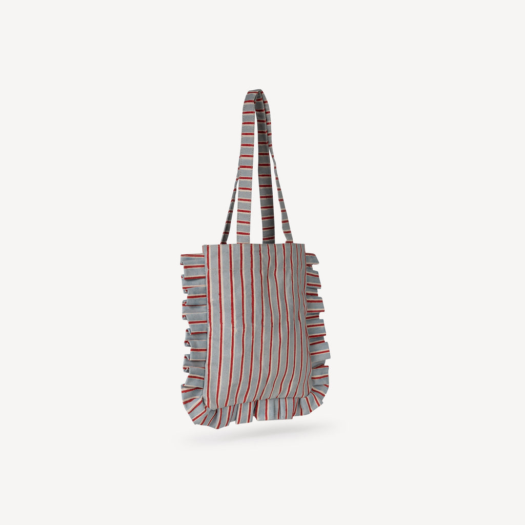 The Momo Tote is your cute and practical everyday bag, made from hand block-printed cotton canvas with a sweet ruffle detail.